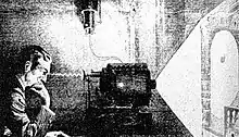 房间里悬挂着两块用锡箔覆盖的硬橡胶板。这两块板相距约15英尺,作为从变压器引出的电线的终端。当电流被打开时,那些放在悬挂的板子之间的桌子上的,或者可以在房间的任何地方用手拿着的没有电线连接的灯或管子,都会变得很亮丽。这些是特斯拉大约两年前在伦敦展示的同样的实验和同样的仪器,“它们在那里产生如此多的奇迹和惊奇”。[lower-alpha 2][130]