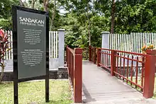 纪念公园是三次死亡行军中“战俘路线”的第一站。这条路线始于山打根,结束于兰瑙“最后一个战俘集中营”。路线上的每个站,现今都有一个标志。