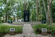 “山打根纪念墓碑”是一个黑色的方尖石碑,它的直径约为10米。题词是: