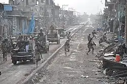 派遣至索馬利亞的巴基斯坦軍隊,正在摩加迪休的街道上巡邏,攝於1993年。[116]