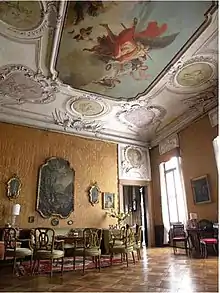 有三个大厅面对大运河,另有三个大厅面对 Rio Zaguri河。在1739年额我略·巴尔巴里戈与卡特琳娜·萨格雷多结婚之际,聘请了乔凡尼·巴蒂斯塔·提埃坡罗等多位艺术大师用壁画和绘画美化宫殿。图案装饰体现新婚夫妇的文化兴趣,分别代表四门科学: 历史、天文学、地理和占星术,以及四门艺术: 绘画、雕塑、音乐和诗歌。