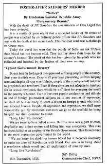 Bhaghat Singh did not become popular because of his act of terrorism but because he seemed to vindicate, for the moment, the honour of Lala Lajpat Rai, and through him of the nation. He became a symbol, the act was forgotten, the symbol remained, and within a few months each town and village of the Punjab, and to a lesser extent in the rest of northern India, resounded with his name. Innumerable songs grew about him and the popularity that the man achieved was something amazing.[24]