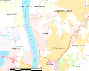 与巴桑斯接壤的市镇(或旧市镇、城区)包括:布朗克福尔、洛尔蒙、昂巴雷斯和拉格拉沃、波尔多、卡尔邦布朗、圣路易德蒙费朗[2]。