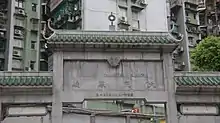 在巴波沙大馬路與菜園涌邊術交界,接近新城市花園石級街口附近行人道上,有一座1998年9月新建的一座中國式牌坊,高約八米,闊約十二米,整個牌坊為中式結構,從建築材料的角度看,這是一個硫璃牌坊;從修建位置和功能的角度看,此為街巷道路牌坊:從建築格局的角度看,此為三間四柱三樓坊。倘若以大三巴牌坊本是聖保祿教堂前壁,不屬專門興建的牌坊為計,該牌坊所在地是澳門唯一設有牌訪的社區,也是全澳門以至全中國唯一一座書有中葡文的人工牌坊。