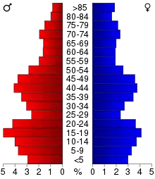 县内的人口结构为25.4%在18岁以下、12.2%在18和24岁之间、25.4%在25和44岁之间、20.2%在45和64岁之间、16.9%在65岁以上。平均年龄为36岁。县内女子对男子的性别比为100:100.4。18岁以上的成年人的性别比为100:97.4。
