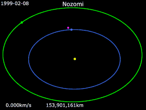 2002年4月21日據ISAS所稱太陽耀斑損壞了航天器的機載通信和電力系統,4月25日由於熱控制系統失效,導致燃料結凍。不過當希望號接近地球時,燃料融化了,並且成功地將希望號轉移至正確的軌道上以進行地球飛越。2003年6月19日希望號成功利用地球進行第二次重力助推,並預計於12月14日接近火星至894公里的距離。