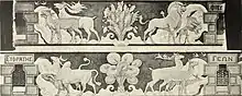 查尔斯·拉迈尔绘制的圆顶内侧饰带的黑白复制品,描绘伊甸园的四条河流