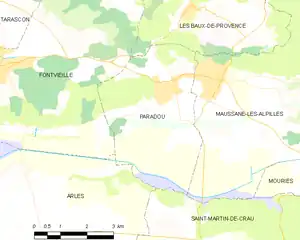 与帕拉杜接壤的市镇(或旧市镇、城区)包括:阿尔勒、普罗旺斯地区莱博、丰维埃耶、莫萨讷莱萨尔皮耶、圣马丹德克罗[2]。