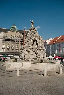 喷泉大致位于广场中部,建于17世纪后期。喷泉由约翰·伯恩哈德·菲舍尔设计,1693年-1695年由亚当·托比亚斯·克拉克建于维也纳。[1]