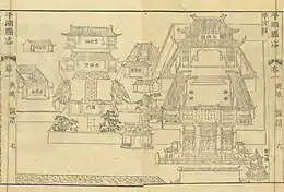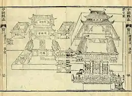 - 《光绪平湖县志·卷三·建置上·学校》:庙制中为大成殿(三间),东庑配殿、西庑配殿(各三间),经籍库(东庑之北),斋宿房、洗罇所(东庑之南,各一间),祭器乐器库(西庑之北),斋宿房、廪给房(西庑之南,各一间),殿前石台一座,下为石陛,正南戟门(五间),棂星门(三座),左右石坊两座,左曰瞻之、右曰仰止,石栏一带,东西下马碑,越大街为泮池、石栏及万仞宫墙一座,棂星门内东名宦祠,西乡贤祠(各三间),戟门内中为圣人之门。殿西北崇圣祠,前为明伦堂,东经义斋,西治事斋(各三间),两斋南北皆有号舍(各两间),前为仪门(三间),门外东为谒圣门一座,韩文公祠(三间)、敬一亭(一间),门内西为忠义孝友祠(三间,详祠祀),仪门外甬道折而东为儒学门(三间),其上为奎星楼,门外为八字墙,又其外为河埠,明伦堂东为教谕署,西为训导署(并详公署),学门内东为柏林书屋(三间,雍正六年邑人俞锡龄等建,为会课公所,后圮,建昌黎祠,书屋移建稍南),西为市房七间,周围围墙一百一十丈有奇,东为龙吟阁三层(王志,按学校规制周详,惟尊经阁未建,斯为缺典)。”