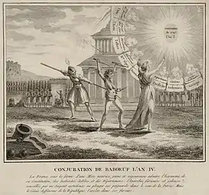 ![]() 一副1796年贬低该密谋的的雕刻画 | |