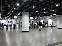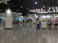 为方便行人进出以及连接付费区内的联络通道,南站厅的付費區分别位於1号线站厅东西两侧,3号线站厅南侧;北站厅付费区则位于站厅东南侧。其中1号线站厅的付費區內設有多条扶手電梯和樓梯供乘客前往站台,而3号线则在付费区联络通道处设有5条扶手電梯、1条楼梯以及1台专用电梯供乘客前往站台。同时亦会在3号线一侧的南站厅设置1台专用电梯供轮椅人士以连接付费区联络通道。此外,1号线站厅連接站台的专用电梯由于站厅的电梯门设于南站廳东侧的非付费区,因此轮椅人士如需使用该专用电梯则需要向车站工作人员求助以便协助使用。