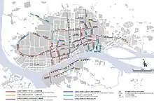 广州市区内现存的骑楼街总计有36条,长度达20多公里,集中分布在老街区约10平方公里的范围内,如荔湾区的人民路、上下九、第十甫路、恩宁路、龙津路、长堤;东山区的文明路、豪贤路、文德路、东华东路和东华西路;越秀区的北京路、大南路、一德路、起义路、海珠路等。此外,海珠区的同福路、南华东、南华中、南华西也有一部分。