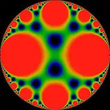 这里单位圆盘上的点 w 对应于上半平面上的点 z。在这个映射中,常数 z0 可取上半平面上任何一点;这个点将映为圆盘的中心。实数轴 映为单位圆盘的边界 。实常数 将圆盘旋转任意一个角度。