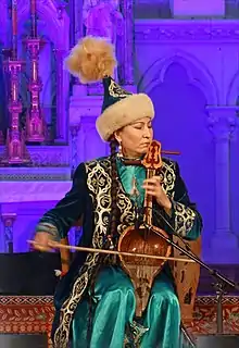 哈萨克斯坦的库布孜乐师在演奏库布孜