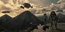 一艘太空船进入地球轨道朝热源所在地发射出一股股光束,将地面的冰层破开形成一条通道。人类的调查组到达目的地后,看到那里有一个废弃的捕鲸站,同时也发现了一条通往地下的巨大通道。从通道进入后,他们发现自己置身一个巨大且神秘的金字塔内,然后开始对其进行探索。他们发现许多象形文字和雕刻,显示出早在有文字记载以前地球上就有了文明存在,他们还发现了一个祭祀室,里面有多具人类遗骨,并且都有数条肋骨断裂。