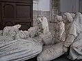 长方形石棺长3.90米、宽2.33米、高1.27米[1]。死者夫妇的卧式雕像躺卧着,双手举起来祈祷。头下的枕头由三个天使举起。玛格丽特的脚下是灰狗,象征忠诚;弗朗索瓦的脚下是狮子,代表力量。在坟墓的四个角落,有四尊雕像,各自代表着一种枢德:勇德、义德、节德和谨慎。