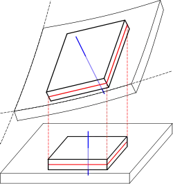 - 和中表面垂直的直線在形變後仍然是直線