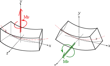 後二個力會形成力偶或是矩,兩個力大小相等,方向相反。彎矩會抵抗梁受力彎曲時的變形特性。若一些簡化的假設成立,可以精確估測梁上的應力分佈[1]。