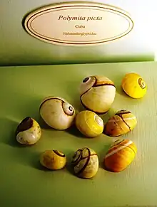| 属: | 彩条蜗牛属 Polymita Beck, 1837[1] |