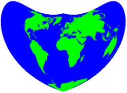 现在彭纳投影多用于编制小比例尺的大洲图。