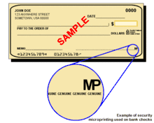 微缩防伪印刷使用的实例之一就是银行支票。微缩印刷技术的使用对印刷机的要求很高,因为如此之小的文字很难被准确印刷。当伪造者试图使用复印机或者电脑扫描仪复制这些文字时,微缩文字会以虚线或实线的形式出现在复制品上。同样,尝试用印刷机伪造也不能准确地制作出微缩字符,因为文字太小,以至于难以制版进行批量印刷。因此,一旦纸币或者其他防伪印刷品上正确地使用了微缩印刷,那么就有理由认为这些纸币或印刷品是真品。