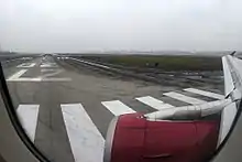 - 第二跑道(02R/20L)[22]:长3600米,宽60米,道面为强化混凝土(局部为沥青)。第二跑道共有5条快速出口滑行道。于2009年12月18日投入使用。第二跑道与机场原停机坪、第一跑道通过一座跨越省道103线的飞机滑行道桥相连。配备III类仪表着陆系统,由于第二跑道南端距离航站楼较远,第二跑道主供飞机降落。