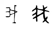 我,是指商朝至戰國時的一種砍殺型冷兵器,於秦朝以後漸漸不再流行[1]。“我”是一種一邊有三排尖齒、頂部尖利的扁平狀兵器,需要再加裝長柄才可以使用。“我”字從戈,是個會意字,有殺戮的意思。[1]如今的「我」表示第一人稱代詞是假借義,久借不還,本義漸失,借義通行。