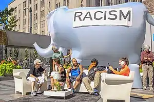 - "‘Elephant in the corner of the living room’: Discrimination common, associated with depression among minority children," (页面存档备份,存于) AAPNews (American Academy of Pediatrics). May 8, 2010; O'Connor, P. (2008) "The Elephant in the Corner: Gender and Policies Related to Higher Education," (页面存档备份,存于) Administration [Institute of Public Administration of Ireland] 56(1), pp. 85-110.