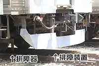 排障器是列车用於排除前方障碍物、避免辗过路轨上的障碍物后把物件卷入底盘而造成运行障碍甚至導致出軌的一種裝置。