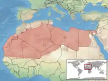 撒哈拉角蝰主要分布於北非的乾燥地區,包括毛里塔尼亞、摩納哥、西撒哈拉、阿爾及利亞、突尼西亞、利比亞、馬里共和國、尼日爾、乍得、以色列及埃及,亦出沒於西奈半島。其標準產地為「埃及(AEgypto)」。[1]