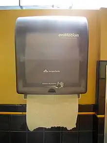 擦手紙機中的紙張大部分是白色的有少許是淡黃色。第一種紙巾穿孔允許它們被撕掉、第二種則由堆疊的紙張組成、第三種紙巾被一體式刀片撕裂。