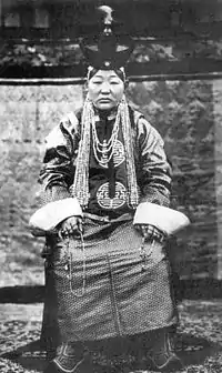 蒙古人尊称其为“察汗达拉”(蒙古語:,即白度母)。光绪三十一年七月二十四日(1905年8月24日),获清廷赏给“额尔德尼车臣”名号。[1][2]宣统二年九月初九日(1910年10月11日),获清廷赏坐杏黄围车。1911年外蒙古独立后,被尊称为“达吉尼母”(蒙古語:,即空行母)。[1]