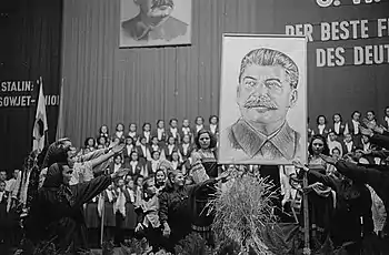 去斯大林化是斯大林逝世後發生的政治改革過程,約瑟夫斯大林在位期間的大部分行為受到譴責,政府進行改革。1956年2月時任總書記尼基塔·赫魯曉夫在苏共二十大上批判他的形象、領導和社會主義合法性的開始。[11]斯大林領導的終結帶來了積極和消極的變化。變化和後果圍繞政治、藝術和文學、經濟領域、社會結構展開。