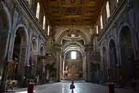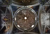 教堂的天花板装饰有46幅镀金框架的长方形壁画,完成于1598-1600年。在贡献的艺术家中,有弗朗切斯科·库里亚、吉罗拉莫 ·伊姆帕拉托(圣母升天)、法布里齐奥·桑塔费德(圣母加冕)、乔瓦尼·贝纳迪诺·阿佐利诺、贝利萨里奥·科伦齐奥(耶稣受难)、路易吉·罗德里格斯("先知"和"西比尔斯")、切萨雷·斯梅特、托马索 · 毛里齐奥。沿着窗户是贝利萨里奥·科伦齐奥的壁画"信仰的象征",他还与路易吉·罗德里格斯合作,在反立面画了"最后审判"。[4] 反立面的右侧是Aert Mytens一幅画作的复制品。耳堂的画作是尼科拉·马林科尼科和贝利萨里奥 · 科伦齐奥的作品。