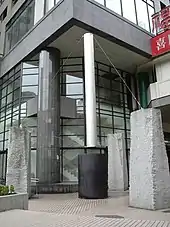 車站出入口廣場設有兩組由日籍雕塑家田邊武所創作的公共藝術作品——《邂逅(天、地、人)》。兩作品中一組為自然石十二塊;另一組為石柱三座、石板十二塊、鋁製燈柱一座[10]。