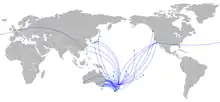 | 目的地 | 國家/地區 | 機場 | 首次飛行 | 最後飛行 | 備註 |
