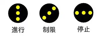 - 通过三盏白灯的排列区分主体信号机的显示。