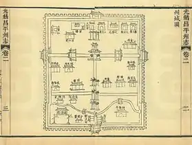 - 《光绪昌平州志·卷三·土地记》:今州城:州故永安城,明景泰元年筑,东、西、南三门俱重门瓮城,内外各有层楼,周一千四百九十二丈九尺八寸,高二丈一尺,徙长、献、景三陵卫于内,以护陵寝,三年并昌平治徙焉。天顺三年天寿山守备廖镛奏建谯楼于城中,万历元年因陵卫续设益多,于城南复筑一城连之,墙减旧城四尺,只有南门瓮城,箭楼亦微小,东、西、南三面共八十四丈五尺,后屡经营造,两城皆甃以砖,至崇祯九年,兵部侍郎张元佐拆旧城南面砖石修补东城门楼,城遂合而为一,周一十里二十四步,池深广各二丈许。国朝康熙十四年重筑新旧城,均高三丈,池深八尺、阔三丈。