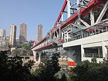 ![]() 从曾家岩站2号线北侧站台拍摄的大桥主体,包括其上的10号线站台 | |