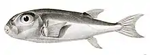 本魚體呈圓筒形,體表面光滑,口小。魚體背部灰青色,腹部銀白;鰓孔白。尾鰭月形,上葉黃色,下葉白色。背鰭軟條11至13枚;臀鰭軟條10至12枚,體長可達45公分。