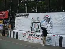 2003年9月,世貿於墨西哥坎昆舉行第五次部長級會議。李京海於9月10日在會場外示威,衝過警方防線,並取出一把瑞士小刀,在多個電視台攝錄機前自刺胸膛,經搶救無效證實死亡,成為了反全球化運動的烈士。