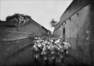 1900年8月4日,八国联军士兵离开天津,进军北京以解使馆区之围。这支军队由下列国家的大约20,000人组成:美军2,000人;日军10,000人;俄军4,000人;英军3,000人;法军800人;德军200人;奥地利和意大利军队各100人。[2]