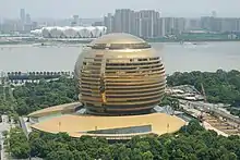 杭州国际会议中心(Hangzhou International Conference Center)俗称大金球,位于杭州市钱江新城南端钱塘江畔,比邻杭州大剧院。