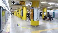 1號線站體為2面2線側式月台的地下車站,6號線站體則是1面2線島式月台的地下車站,兩線候車月台皆設有月台幕門。