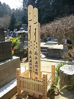 作為類似佛菩薩加持的牌位,直式書寫,內容有佛經名或法會名、欲超薦者之名諱、供養者等資料,如「南無妙法蓮華經 某某院某某居士位 新盆會水向供養塔」、「奉修大施餓鬼會 為某某居士位 盂蘭盆會供養塔」、「(五輪塔種子字)爰寶塔者為東日本大震災犧牲萬靈離苦得樂」[6],用意在經由法會的追善供養,救度墮入三惡道的亡者。