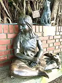周錫瑋請前縣府顧問謝秀棋接洽,終獲王秀杞應允承製銅像[12]。起初設計曾嘗試用林蔚伶的成人形象,後來選擇她九歲童時模樣,圍繞身邊有六隻貓,以傳達與動物和平共處的理念應從小培養[13]。由三芳化工與野崎君子文教基金會捐贈新台幣一百五十萬元製作,2010年11月22日動工[8][13]。2011年6月13日,銅像於榕堤餐廳附近揭幕[12]。