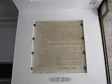 大门内有两块石牌。一块上面是梅拉诺的市徽和区徽,另一块牌子由贝尼托·墨索里尼政府安装,写的是第一次世界大战中阿尔曼多·迪亚兹将军的名言。这冒犯了当地说德语的居民,他们在战争期间为奥地利而战。第二次世界大战和法西斯政权结束之后,这块牌子及其铭文完好无损,但市政当局在它下面增加了一块新牌子,说明旧牌子的历史背景。今天,这块牌子留作纪念,作为对后代的警告。