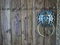 椒图,龙生九子之一,形状像螺蚌,性格好闭、好僻静,最反感别人进入它的巢穴,铺首衔环为其形象。