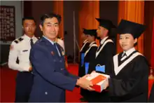 杨静瑟(左)在2019年空军官校的颁奖典礼